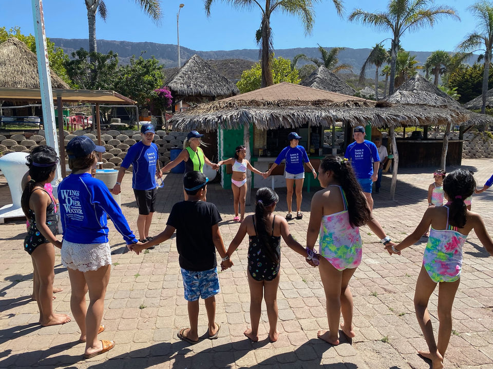 In August 2022, Swim to Success worked with 18 children from poor migrant families in Baja California, Mexico. The team comprised 11 individuals with 5 instructors, 3 translators, and 3 lifeguards. We started by doing water safety activities with the children through coloring books and real-life demonstrations. We then worked on getting the children comfortable in the water. They blew bubbles and practiced their breathing under the water. In the following days, we introduced back float positions and practiced these on land as a group before we moved to the water. The children then started to practice applying the techniques in the water with the teacher's assistance and then on their own. Our team also incorporated plenty of free time to continue allowing the children to gain familiarity with the water while having fun with us and their friends. By the end, children who were too scared even to dip their feet in the water were showing us their back floats and completely submerged under the water.